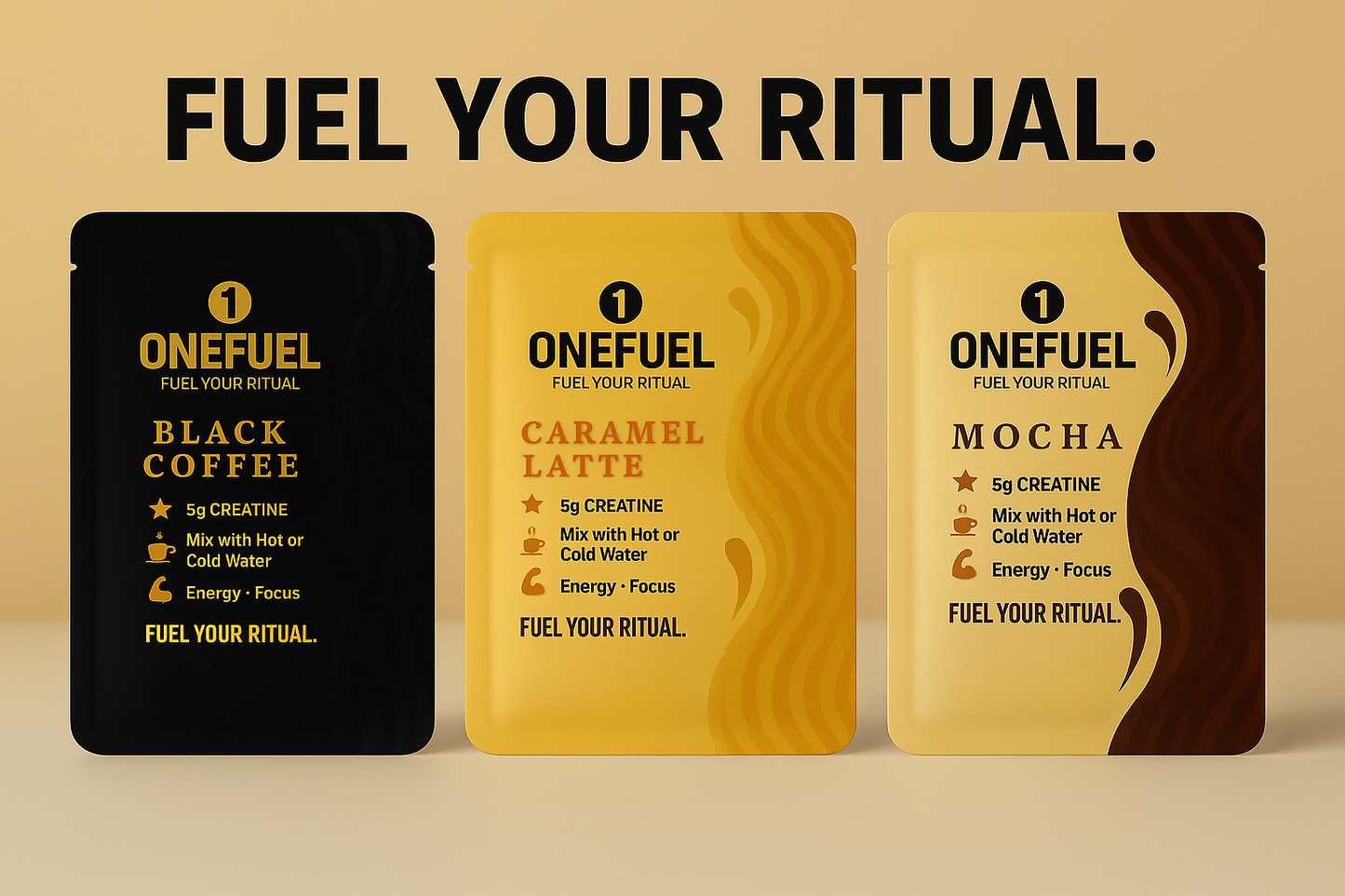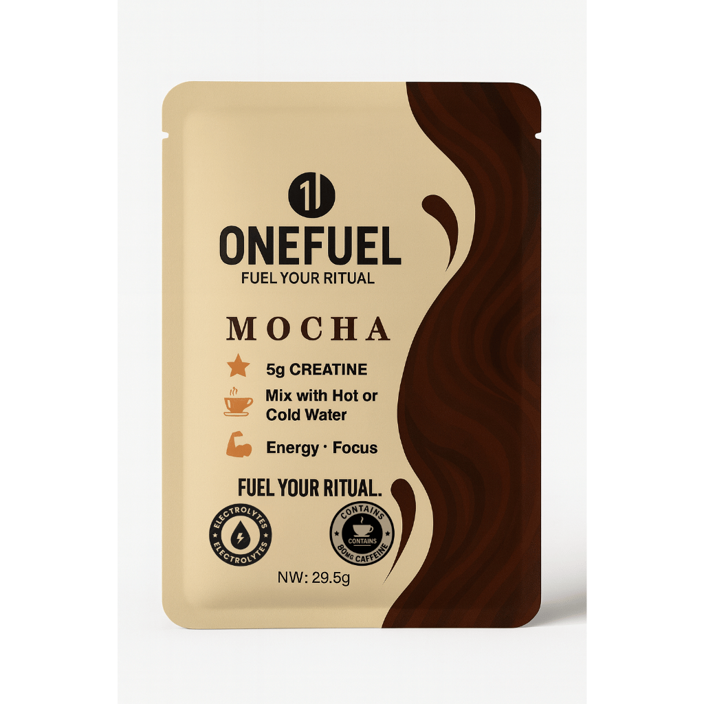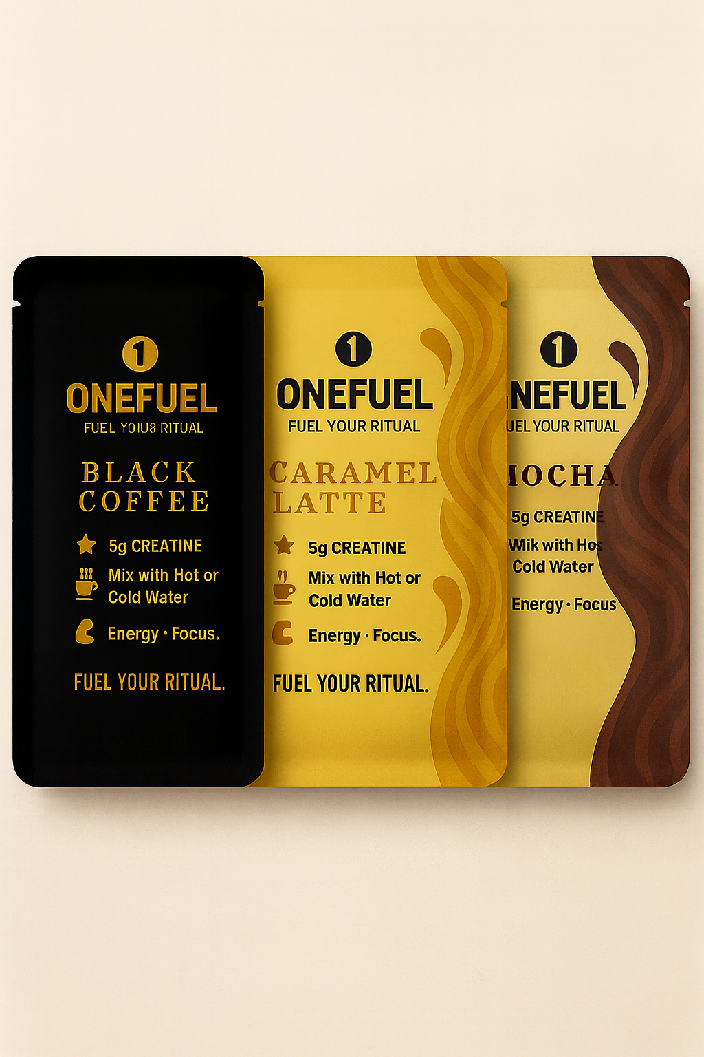 OneFuel Coffee combines three proven ingredients — premium Colombian coffee, 5g of creatine monohydrate, and electrolytes — into one convenient daily ritual. No weird fillers, no synthetic junk. Just clean focus, strength, and hydration in a scoop or sachet.